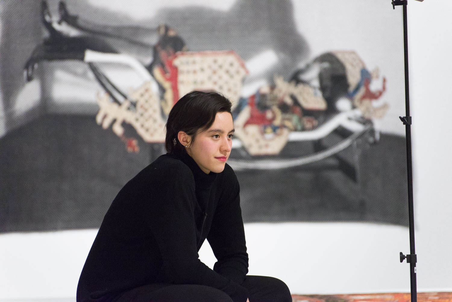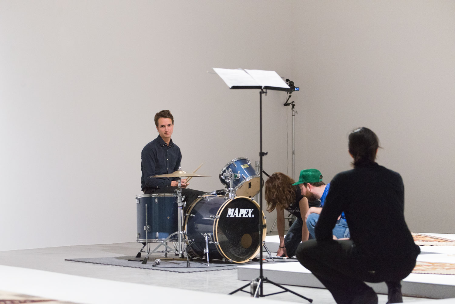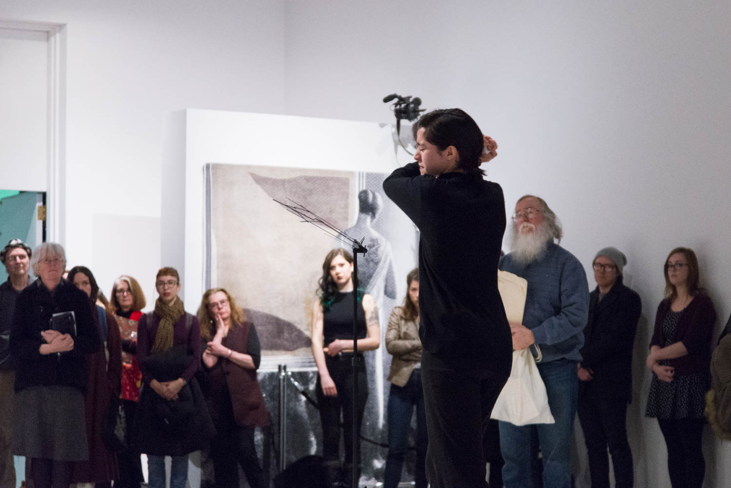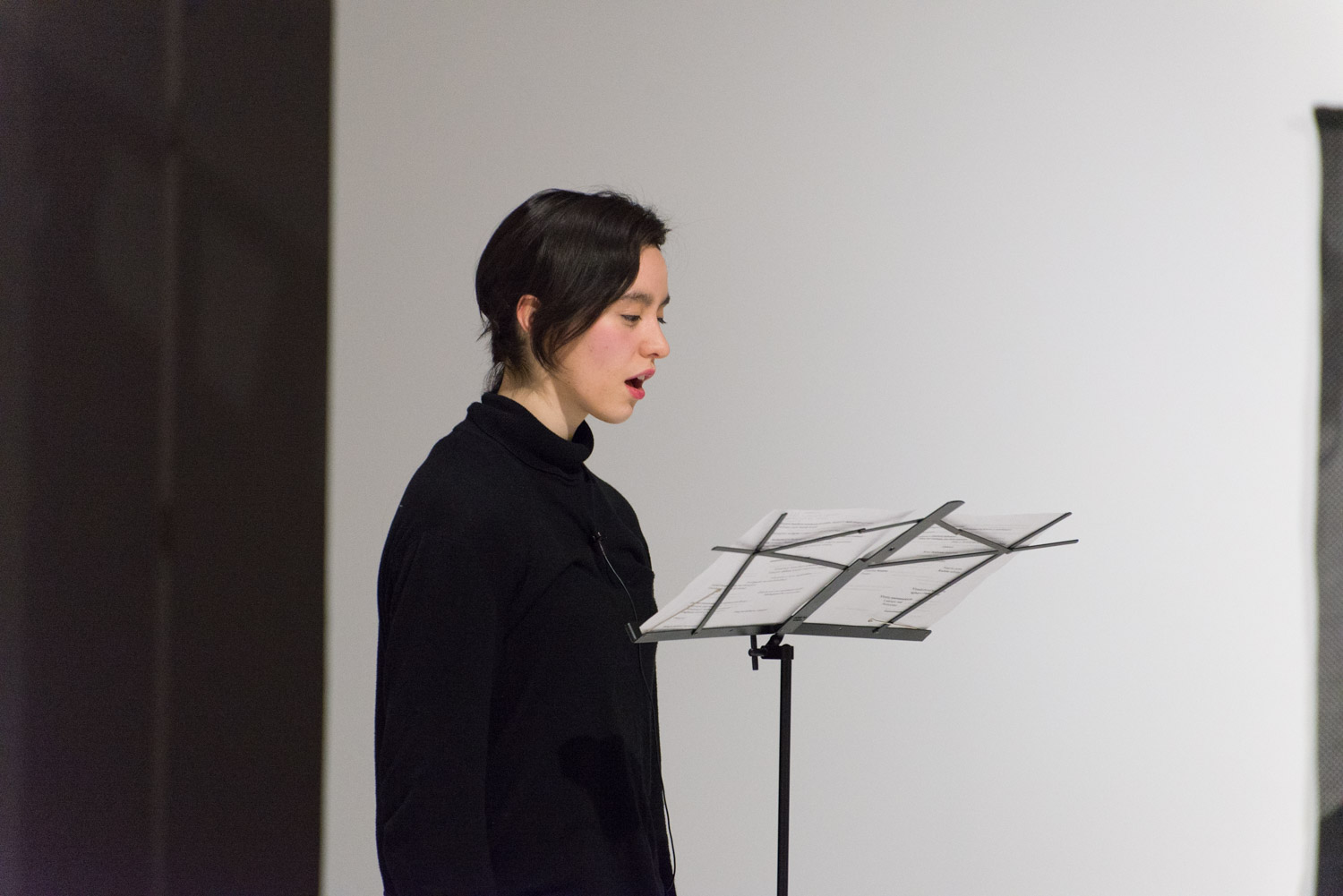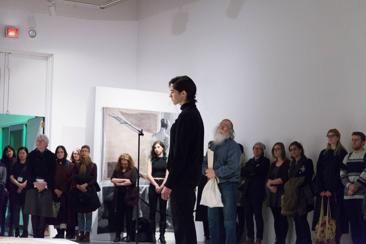 KHAAREJ No.2 is a performance, which shares similar methodologies and approaches of translation and cultural re-appropriation with Shannon Bool’s Eastern Carpet in the Western World. The piece is based on a poem written by Sahar Te, using mostly English words that have been appropriated by Farsi, performed by English speaking performers while the Farsi words are scratched out of the poem.